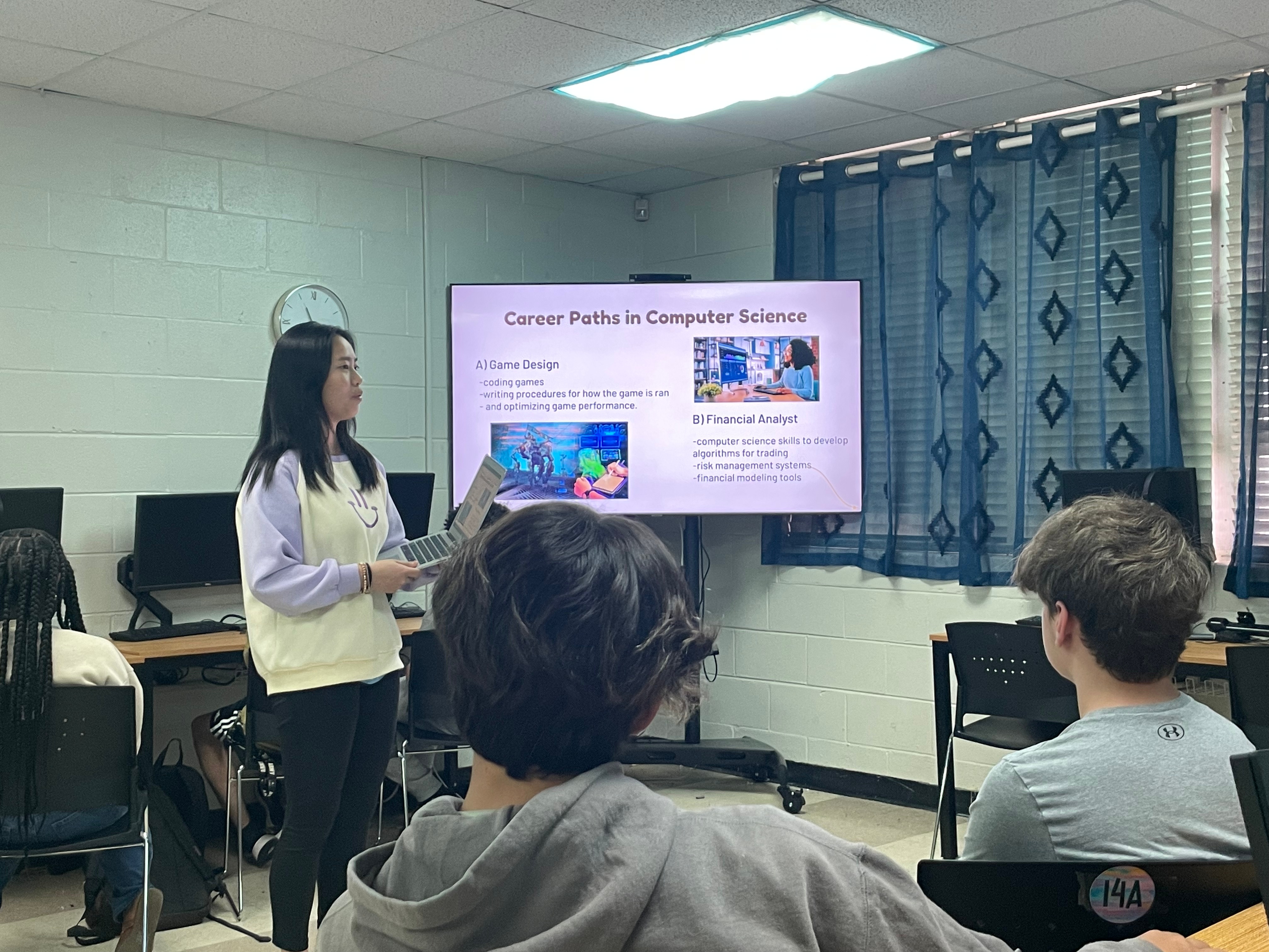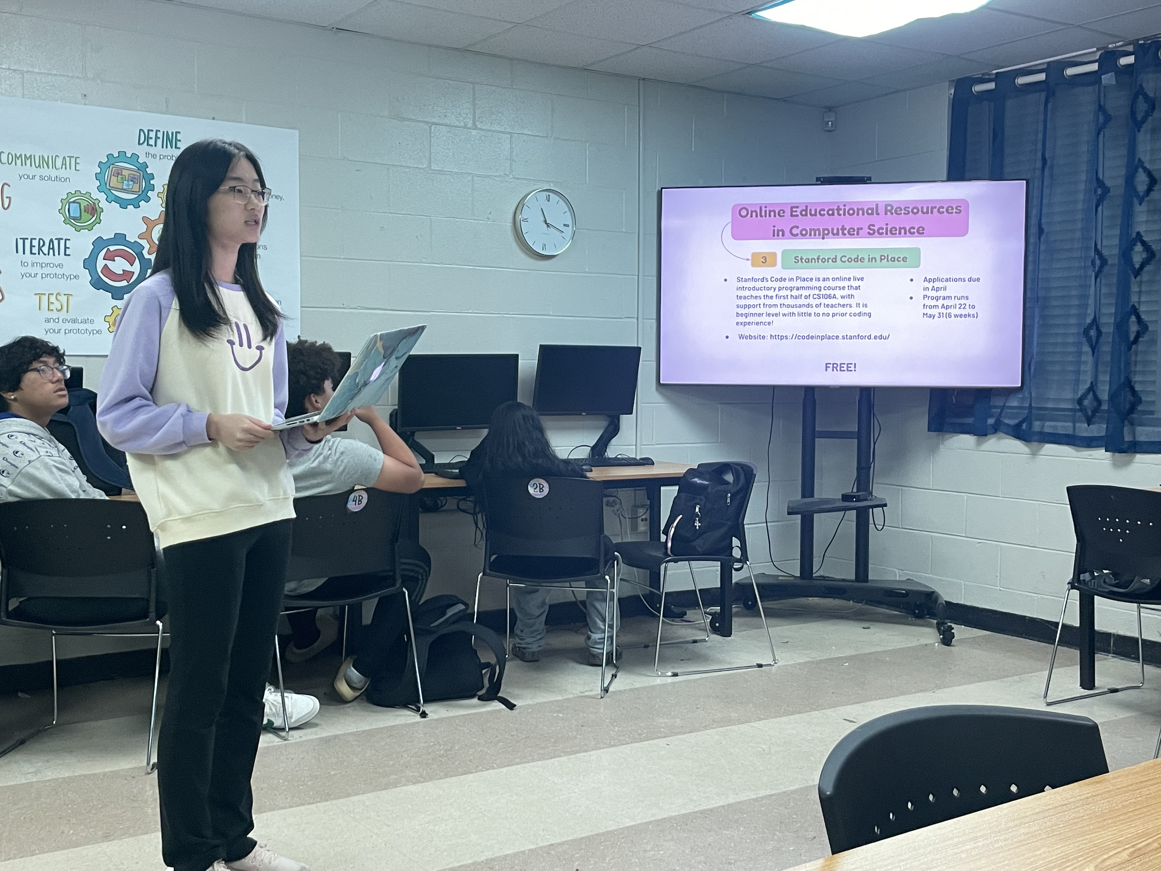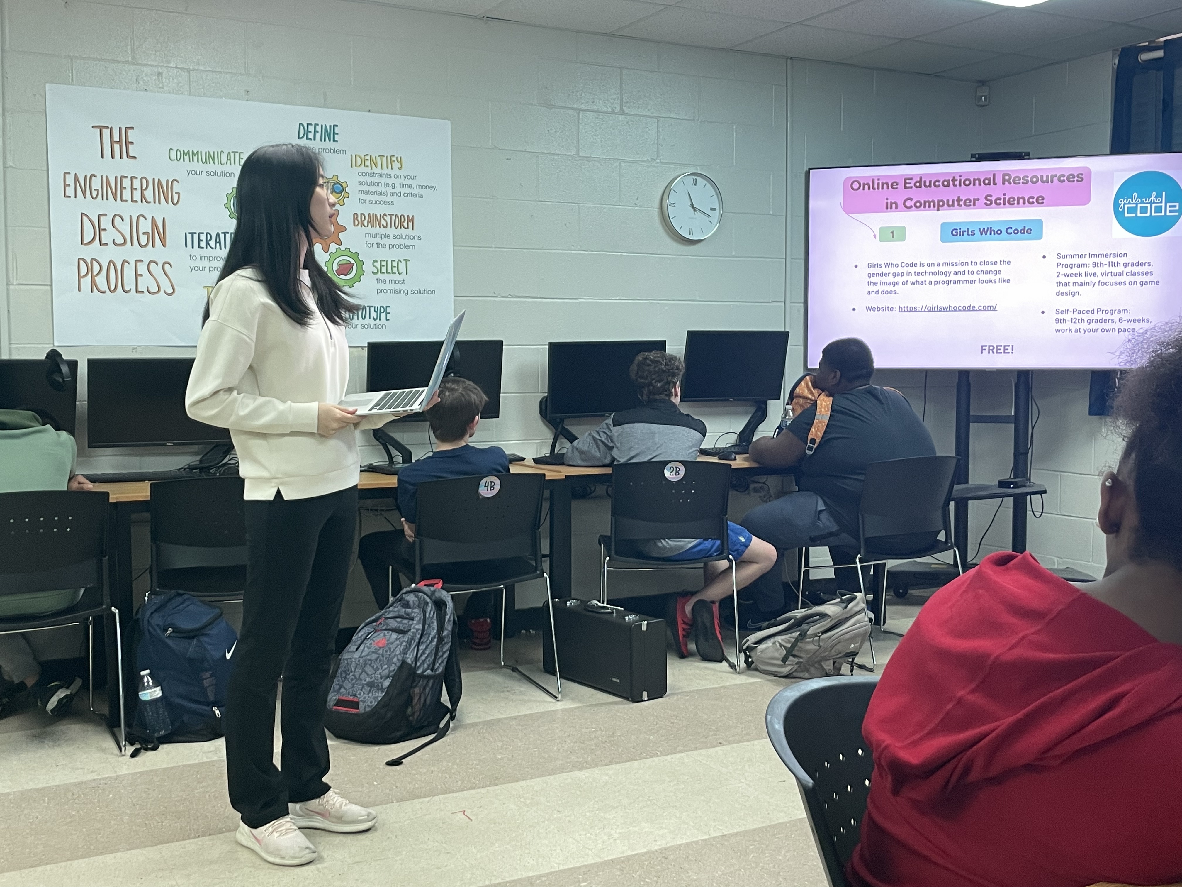 They developed STEM Outreach workshops and presentations for six eighth-grade classes at Oak Grove Middle School, covering topics such as various job opportunities in computer science and accessible online educational resources. To make learning interactive, they created several STEM-related games for students. During the workshop, they introduced a ‘Coding through an Adventure’ game, where students learned about conditional and if-else statements through an engaging narrative. They also presented two math-focused games, ‘Calculate Your Age with Your Number’ and ‘Addition King,’ which taught students about mathematical patterns and algorithms.