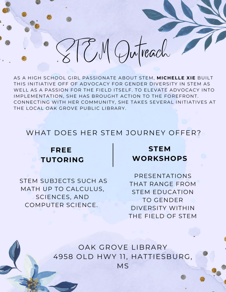 Michelle Xie and Mary Xie have created a STEM outreach program. As passionate advocates for STEM education, particularly for women in STEM, they aim to turn advocacy into action.